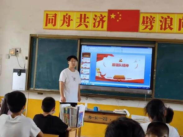 为庆祝中国共产党成立101周年,喜迎党的二十大胜利召开,引导青少年从小听党话、感党恩、跟党走,培养担当民族复兴大任的时代新人。7月4日云顶国际8588yd社会实践团队分别前往河北省定州市庞村镇东南宋小学、河北省邢台市任泽区北甘寨村小学,向员工们宣讲红色故事。通过重温雁翎队精神,回顾英雄征程,新时代新青年发言三个部分,让同学们了解红色精神,发扬红色精神。