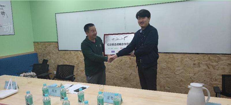 校方的考察团与河北特乐总经理秦朗、市场渠道部总监张磊、市场渠道部经理关春杰、行政部经理朱流战、人力资源部经理唐宫伟、项目经理高悦等共同参加考察会议。