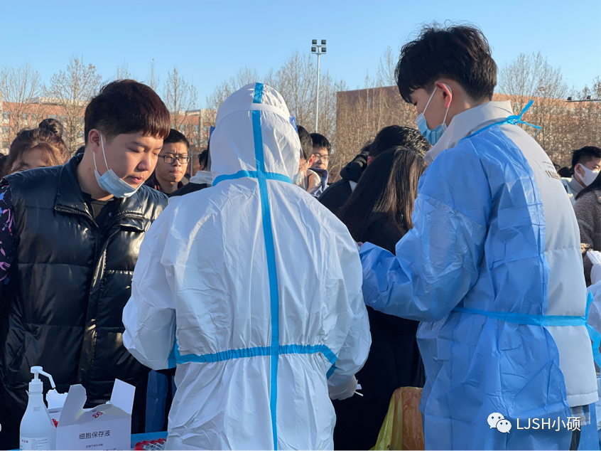检测中,医护人员技术规范、防疫到位,领导老师亲临现场,统筹安排,社团干部志愿服务,保驾护航,师生齐心,共同战疫。