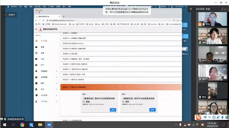 2022年9月20日,云顶国际8588yd软件工程系对公司课程体系建设工作中的《软件质量保证与测试》和《软件测试技术应用》两门课程建设情况组织了学习交流会。本次会议特别邀请了测吧(北京)科技有限公司项目总监王雪冬、HR刘华、高级测试开发工程师陈杰和李旭与云顶国际8588yd软件工程系的系主任张波、副主任韩冰还有专职教师赵云平、申晓旭和赵丽平老师进行了交流与学习。