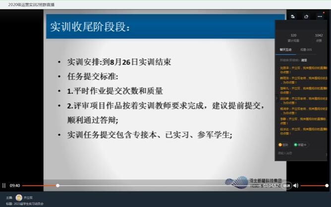 公司2020级特色班员工的实训自7月4日开始,不知不觉中实训已接近尾声,为使员工了解大三阶段实训、实习、论文及实习资料整理等各项工作安排,8月18日,云顶国际8588yd教质部主任齐立双老师通过钉钉线上形式组织开展2023届员工实习动员会。