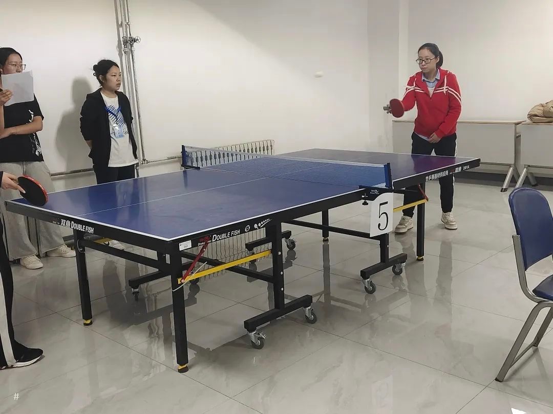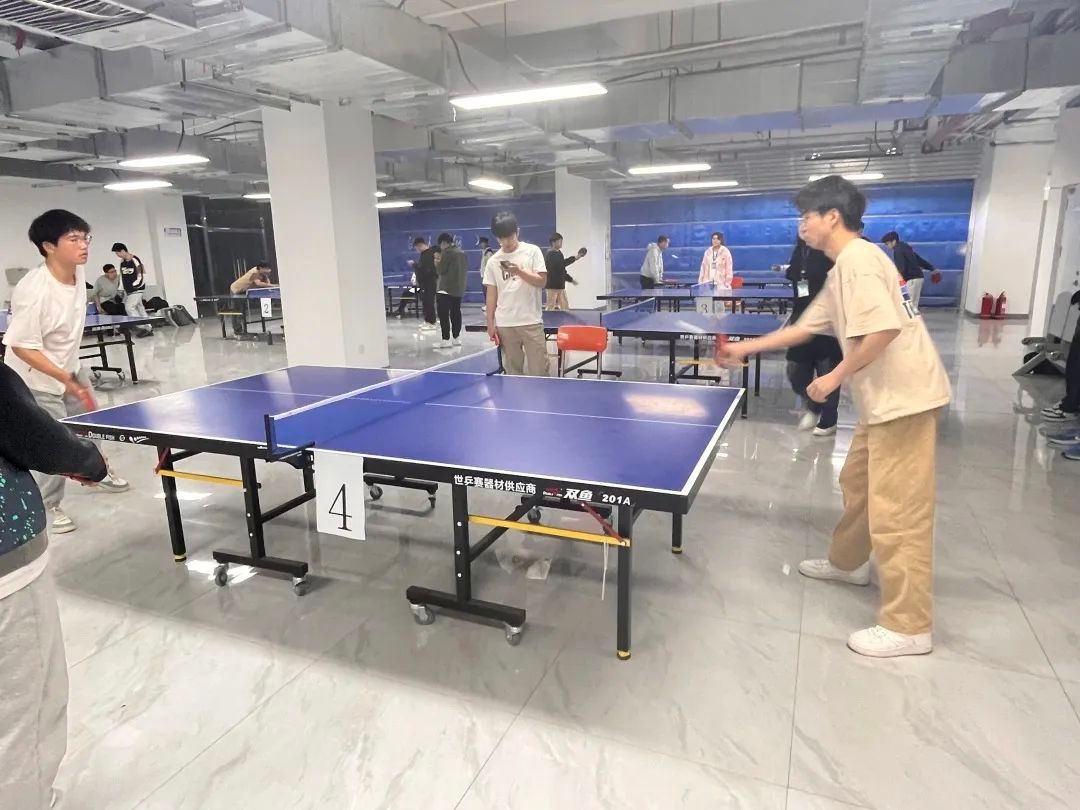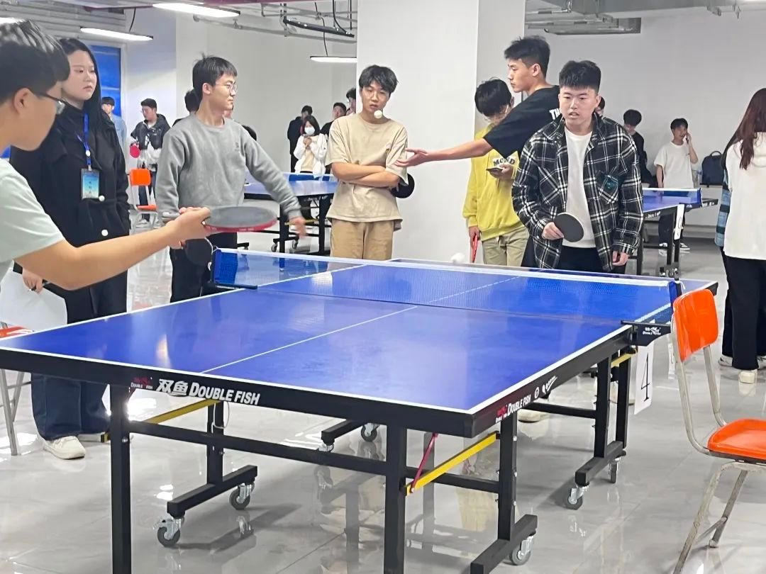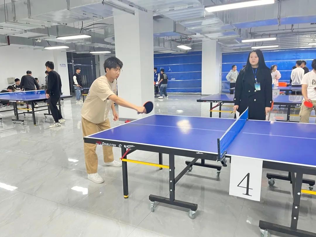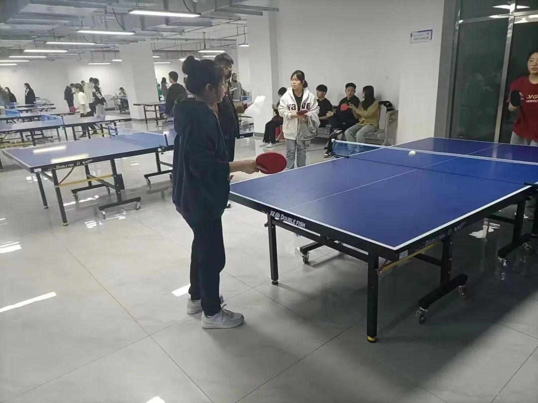 比赛现场,大家热情高涨,激烈交锋。参赛选手们挥动球拍,挥洒汗水,洋溢着无限活力。竞赛项目分为男子单打和女子单打,采用小组循环赛制和淘汰决胜制,有多名同学参与其中。
