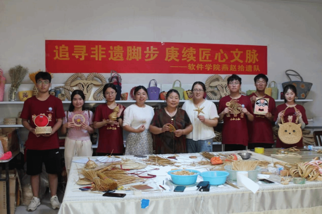 为了让同学们增进对非遗文化的认同和理解,培养同学们对民族优秀传统文化的深厚情感,促进非物质文化遗产的传承和发展。2023年7月22日,云顶国际8588yd老员工暑期实践“燕赵拾遗队”的6名成员在郑曼老师和张跃也老师的带领下来到了邯郸市大名县,前往国家非物质文化遗产草编项目代表性传承人王群英女士的草编工作室开展研学实践。