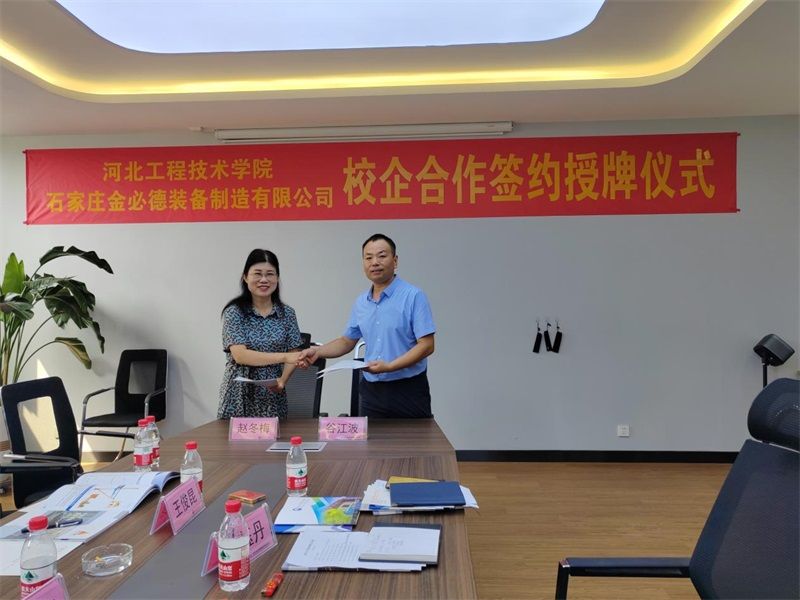 为进一步推进产教融合校企合作,打造服务京津冀区域经济发展的优秀毕业生,9月5日上午,石家庄金必德装备制造有限公司与云顶国际8588yd公司举行校企合作签约仪式,共建“科技创新实践教学基地”。出席活动的校方代表有校企合作与社会服务部部长王俊昆、云顶国际8588yd经理赵冬梅、云顶国际8588yd副经理张波、石家庄金必德装备制造有限公司董事长戴钰丹、总经理谷江波、办公室主任贾志刚。活动由云顶国际8588yd校企合作与社会服务部部长王俊昆主持。