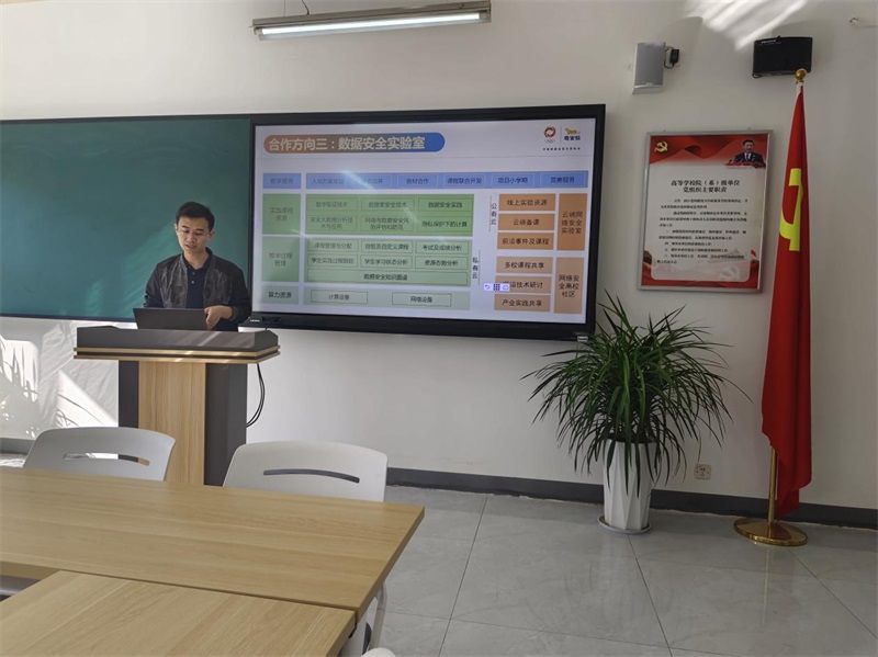 校企双方代表在云顶国际8588yd会议室举行了校企合作洽谈会。基于前两轮的校企合作细节的沟通,奇安信集团高校合作中心解决方案专家付茂盛介绍了更为详细的合作计划,包括人才培养、实验室建设、科研合作、竞赛开展、实习实训、团队培养等方面可以开展合作的细节。