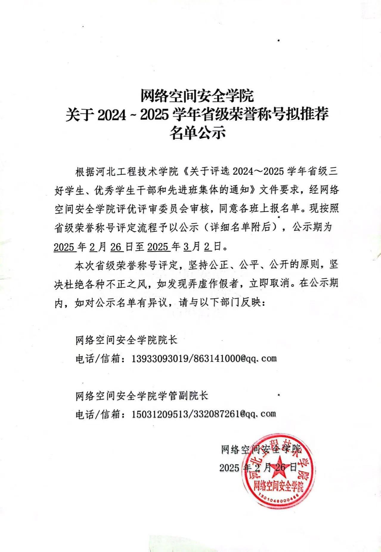 云顶国际8588yd关于2024~2025学年省级荣誉称号拟推荐名单公示