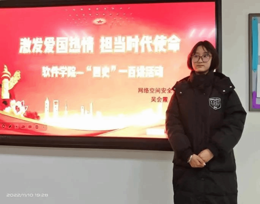 2022级软件工程2班张爽同学给我们讲述了习近平总书记来到江西,看望慰问广大干部群众和驻赣部队,首站就是井冈山。习近平总书记指出:“井冈山时期留给我们最为宝贵的财富,就是跨越时空的井冈山精神。今天,我们要结合新的时代条件,坚持坚定执着追理想、实事求是闯新路、艰苦奋斗攻难关、依靠群众求胜利,让井冈山精神放射出新的时代光芒。”