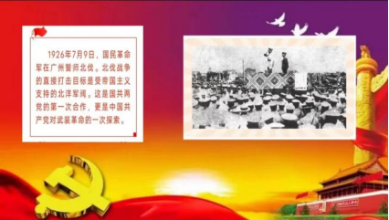 随着帝国主义侵略和北洋军阀独裁统治的加剧,处于低谷时期的中国共产党与迫切需要新鲜血液注入的中国国民党达成合作共识,亦给失望落魄的孙中山燃起了新的热血,掀起了中国大革命的浪潮,亦给深处于危难之间的国人带来希望,开启了中国共产党和中国国民党进一步发展的历史新篇章。中国国民党第一次全国代表大会召开标志着国共统一战线的正式形成。在北洋军阀的连年混战下,广大人民群众饱受苦难,民不聊生。攘外必先安内,国共联军亦认识到想要打到侵略者必须先统一祖国,一致抗外,因而一场轰轰烈烈的以讨伐北洋军阀为目的的北伐战争拉开序幕。