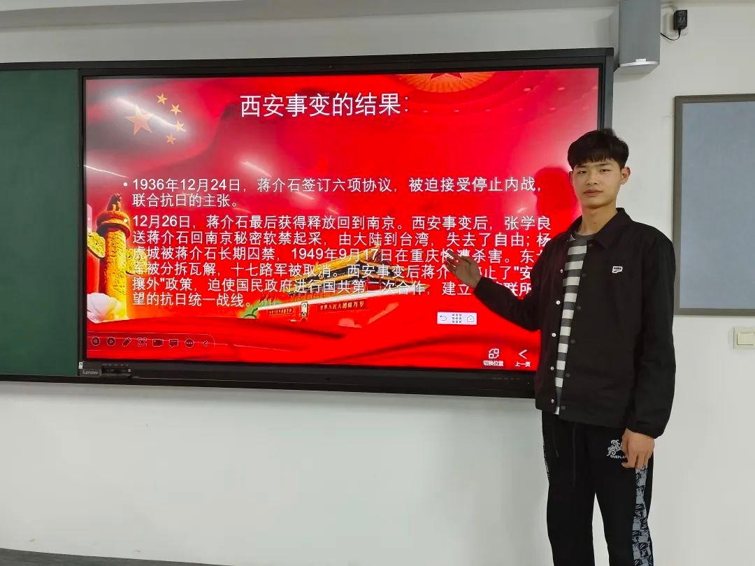 网络空间安全二班的李亚雯同学向我们着重讲解了红红军改编的历史背景:正是因为卢沟桥事变的爆发促进了红军向八路军和新四军的改编。网络空间安全三班的李帅兵同学则向同学们介绍了卢沟桥事变的时间:1937年7月7日、地点:北平。软件工程一班的秦佳赫同学给同学们介绍了本章节中所涉及的英雄人物。软件工程二班的张天祥同学向大家介绍了平型关大捷:又称平型关战役、平型关伏击战,是1937年9月25日,为配合友军作战,阻挡日军攻势,由八路军第115师师长林彪、副师长聂荣臻指挥,在山西省大同市灵丘县平型关附近,首次集中较大兵力对日军进行的一次成功伏击战,是抗日战争全面爆发以来中国军队的第一个大胜仗,也是在抗日战场上中国军队第一次主动向日军发动攻击并取得全胜的战斗。软件工程三班的赵何达同学则重点总结了红军改编,平型关大捷的历史意义。