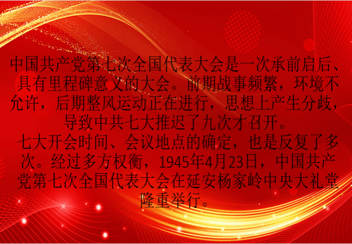 中共七大是中国共产党在新民主主义革命时期极其重要的一次、也是最后一次代表大会。毛泽东思想是马克思列宁主义在中国的运用和发展,是被实践证明了的关于中国革命的正确的理论原则和经验总结,是中国共产党集体智慧的结晶。为使同学们深刻了解这一为党领导人民去争取抗日战争的胜利和新民主主义革命在全国的胜利,奠定了政治上、思想上和组织上的深厚基础的重大会议,特进行四史教育第三十四讲——汇聚七大 确立指针。
