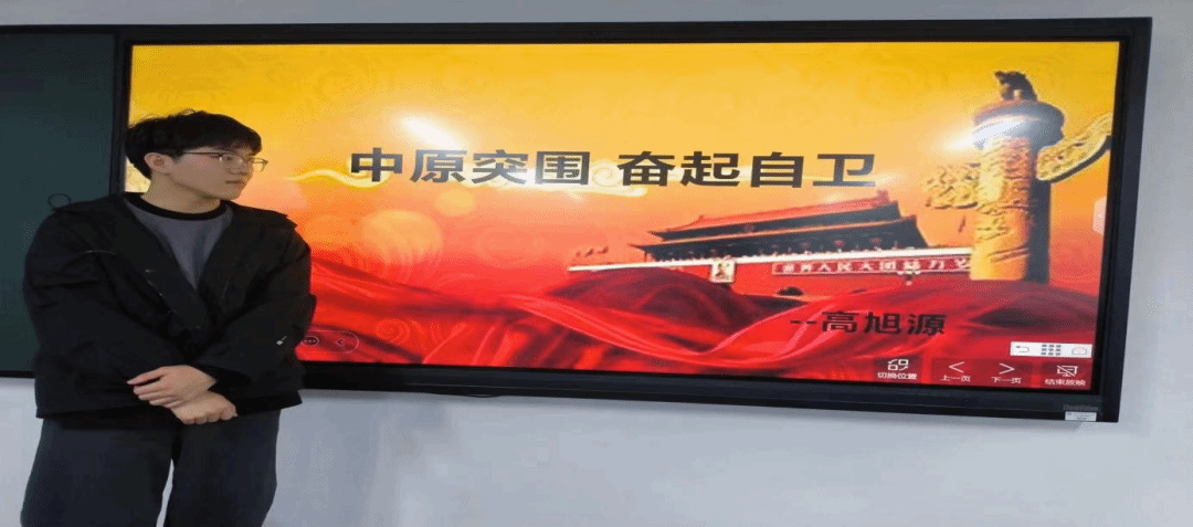 2022级软件工程2班马华壮同学介绍了中原突围的主要人物。粟裕,我党我军杰出的无产阶级革命家、军事家,中国人民解放军大将。粟裕同志戎马一生,身经百战,以精湛的军事指挥艺术,保持了常胜不败的纪录,创造了战争史上的奇迹,为中国人民的解放事业建立了不朽功勋。毛泽东同志曾称赞粟裕“指挥正确,既灵活又勇敢,故能取得伟大胜利”。