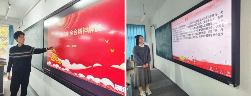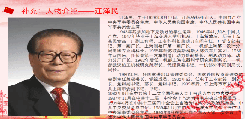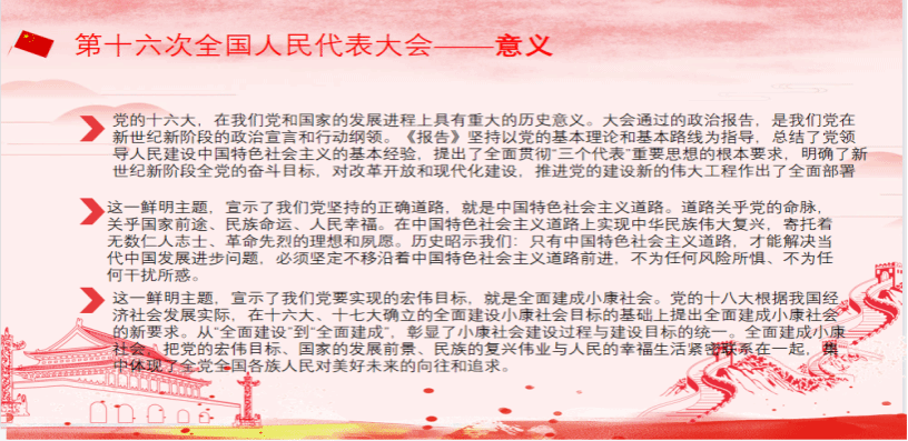 2022级软件工程五班的晋博森同学为同学们说明了十六大提出全面建设小康社会的奋斗目标,将加快推进社会主义现代化的新的发展阶段。坚定不移地全面贯彻"三个代表"重要思想,坚持以经济建设为中心,把发展作为执政兴国的第一要务,抓住机遇,加快发展,使我国综合国力和人民生活再上一个新台阶。中国顺利的进入了世界贸易组织,我们的党走在时代潮流的最前端,团结带领我们13亿是中华儿女前进,纵有多少的风险和阻碍都阻挡不了我们的前进。
