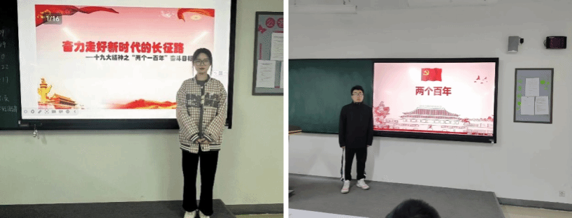 2022级软件工程四班的周新涛同学为同学们讲述了习近平新时代中国特色社会主义思想以事宽广,事长远的眼光来思考和把握党和国家未来发展,为我们实现“两个一百年”奋斗目标提供了理论指导和行动指南,为回答“强起来”的问题,完成“强起来”的任务,在理论上拓展了新视野,在实践上作出了新概括,全面建成小康社会,要考虑 2035 年基本实现现代化的目标和 2049 年的更高目标,要立足于打基础、谋长远、见成效。