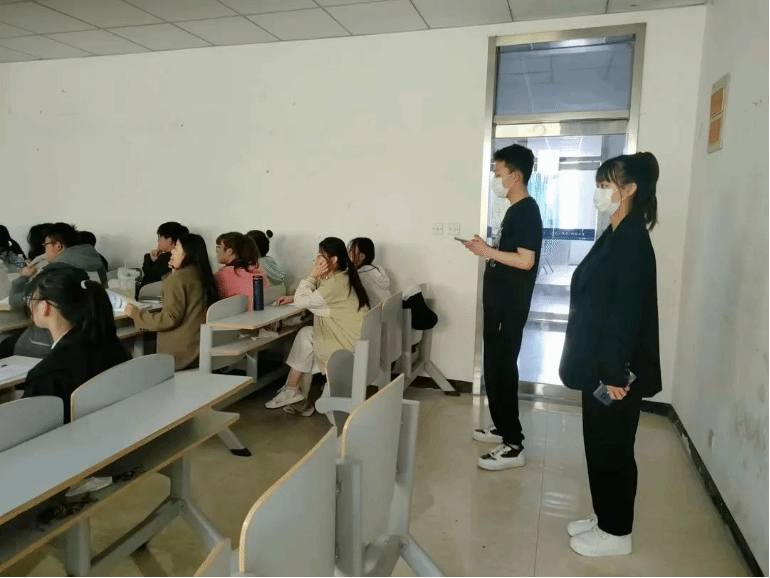 首先,新龙之慧社团行政部的同学提前到岗,检查同学们上课考勤情况并点名确认,每天上课过程中,行政部同学轮流不定时在走廊检查并查看各班课堂纪律,检查过程中个别员工打瞌睡,都被行政部同学叫醒,保证了课堂上每一分钟的高效利用。