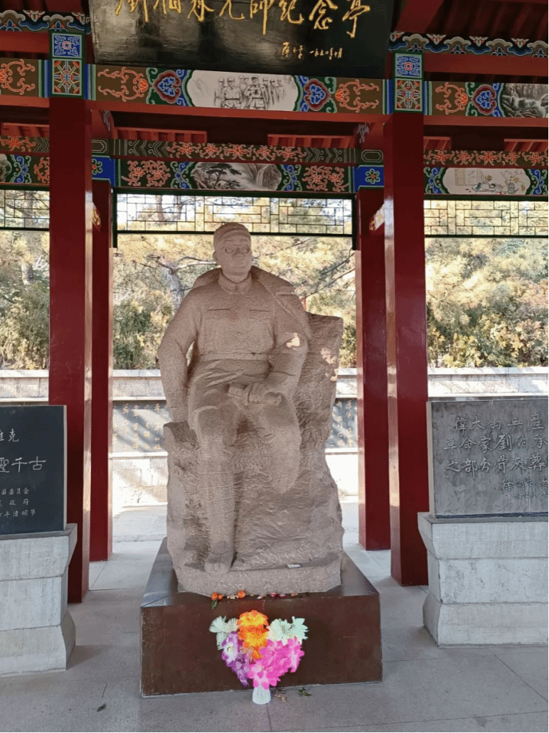 1986年10月7日,刘伯承元帅在京逝世。遵照他的遗嘱,10月27日,由刘帅子女刘太行、刘太迟、刘雁翎和中央军委办公厅、总参管理局负责同志护送,将刘帅灵骨安放在将军岭第一个129台阶处,并建造了纪念厅。