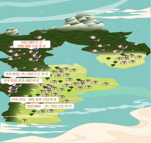 实践团队分别来到了井陉吕家村和大梁江村、邢台鱼林沟村、邯郸大贺庄村、张家口南留庄村共5个地点进行了一线的实践调研,队员们通过拜访村民、对话村干部、专访民宿管理者来了解当地历史文化和特色农产品,以此感受古村落的发展现状,探索在新时代乡村振兴背景下如何以互联网形式助推古村落的文化传承和旅游发展。