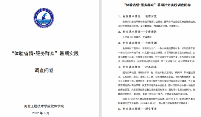 本次暑期社会实践“软件一夏 考古未来”实践团队以“体验省情●服务群众”为主题,立足于对传统古村落文化的弘扬和传承,对河北省内国家级历史古村落进行了深入调研,在数字化时代大潮下,运用互联网思维尝试古村落的保护、利用与发展。在实践中传承耕读古村落文化,赋能乡村振兴,以实际行动迎接党的二十大胜利召开。