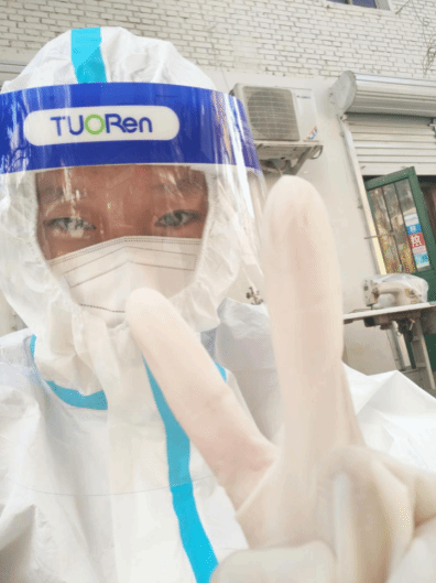 当她穿上防护服成为“大白”时,认真对核对核酸检验人员的信息,与核酸采样的医护工作者配合默契,确保不出一丝纰漏。防护服一穿就是好几个小时,期间不能吃不能喝,每次结束采集工作后脱下防护服,脸上时被口罩和面屏勒出的印子,脸上红红的,衣服被汗水打湿,但她从未想过放弃,她始终坚信这场战“疫”,终将胜利。