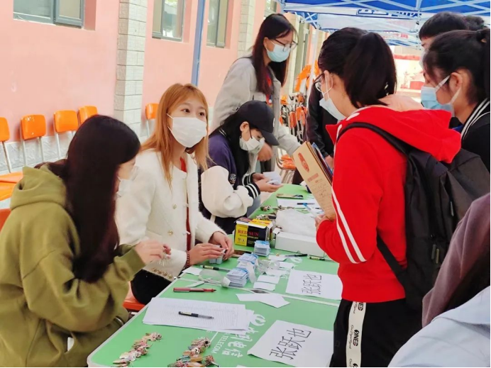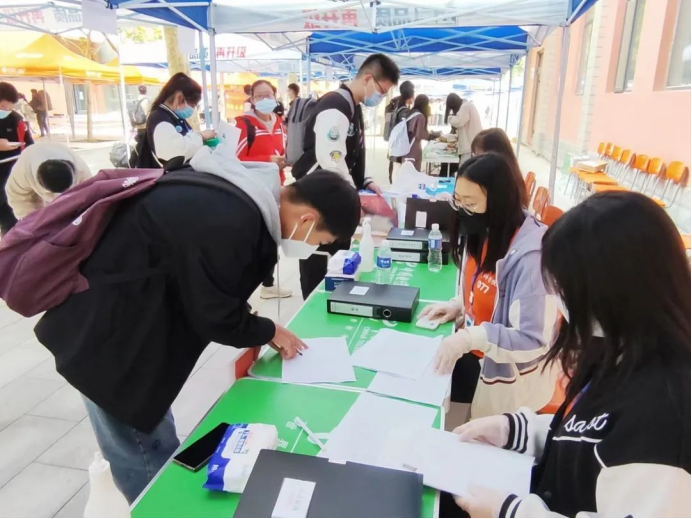 穿过了繁华的街道,学长学姐引领新生前往报到处报名,大家都有礼貌并且很有秩序的排队,听着指挥进行报名填写资料,进行登记,分宿舍领取钥匙。