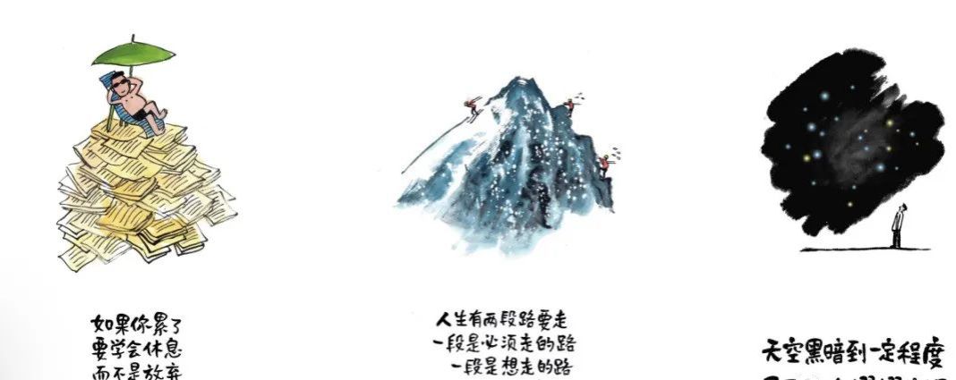 书中一幅幅漫画,配上言简意赅的文字,让人印象深刻。关于人生。小林老师用漫画告诉我们如果你累了要学会休息而不是放弃,天空黑暗到一定程度星辰就会熠熠生辉;原来人生有两段路要走,一段是必须走的路,一段是想走的路,必须走的路先走好,才有机会走想走的路。关于生活。作者告诉我们生活会磨平你的棱角但也会给予你锋芒,如果足够勇敢说再见生活便奖励你一个新的开始,有些路没有人陪反而走的惬意。关于父母。他写道可不可以,陪我长大,而不是教我长大。关于成长。他写下先要独自上路,才会遇到同路人;愿你走过一路难堪,依旧落落大方。