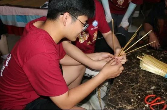 实践团队首先来到了高马庄村一户具有多年草编编织经验的老人家里,老人热情接待了实践团队成员。在老人的引导下,大家参观了传统草编原料和第一道工序掐辫的成品,老人将小麦杆整理好后便开始了教学。“掐辫已经很少被现在的年轻人关注了。”老人低着头说,“这种工艺说简单也简单,要做好却也不容易,要有耐心,要细心,要能找到窍门。”看着小麦杆在老人的手中被熟练的编织着,形成了一串漂亮的花纹。团队成员对此产生了浓厚的兴趣,纷纷亲自动手尝试看起来简单的草编手工工艺。可当真正操作起来,大家发现这种手工工艺并没有看起来那么简单,不仅操作繁琐,并且十分考验工艺人的专注力和细心程度。团队成员向老人一次又一次的请教,老人不厌其烦的为大家讲解着需要注意的问题。最终在老人的耐心指导下,大家制作出了自己人生中的第一个草编作品,虽然不成熟的技艺让这些作品有些歪歪扭扭,但是这次宝贵的经验让实践团成员们体会到了草编工艺的价值与魅力。