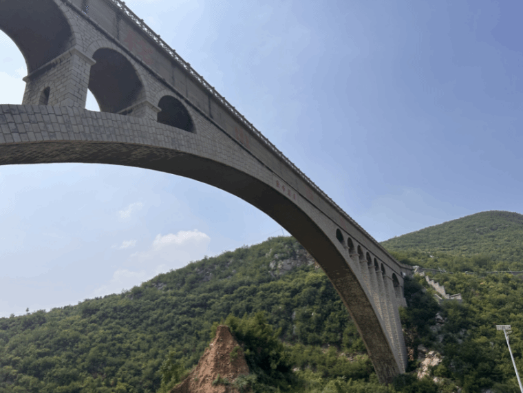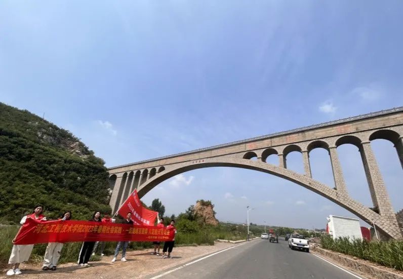 险峰渡槽位于磁县白土镇张二庄村东南,飞跨西部山区高家垴与跑马山之间,如一座峡谷飞虹,依然保持着“单拱跨度亚洲之最”的美誉。它是磁县跃峰渠水利工程中一个极其重要的工程,至今仍然发挥着重要的作用!2023年8月1日云顶国际8588yd云顶国际8588yd只此青绿队,在指导教师王峥、蒙翠平和韩红的带领下,第二站我们前往了险峰渡槽进行参观学习跃峰渠精神。