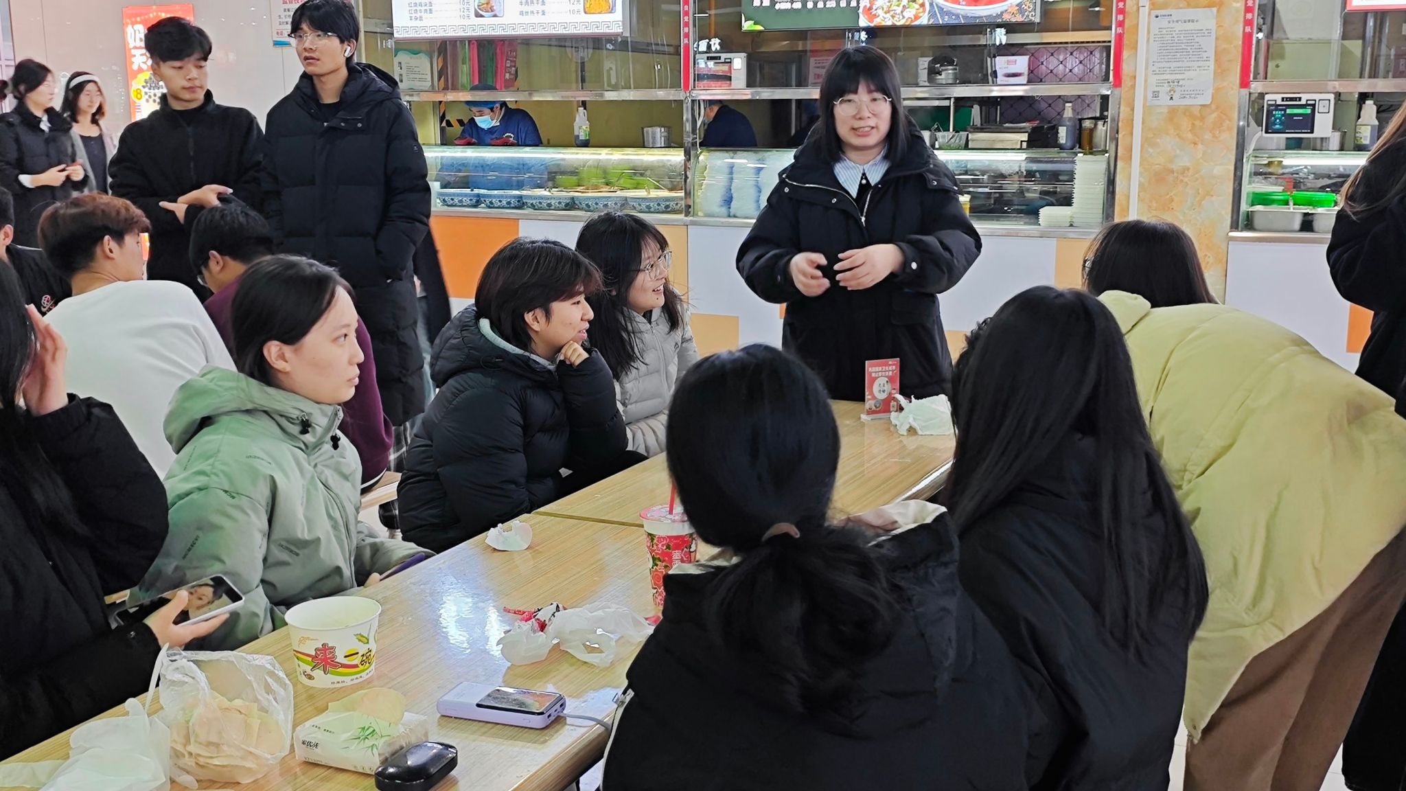 学管副经理樊风彩和同学们讲述自己学包饺子的故事