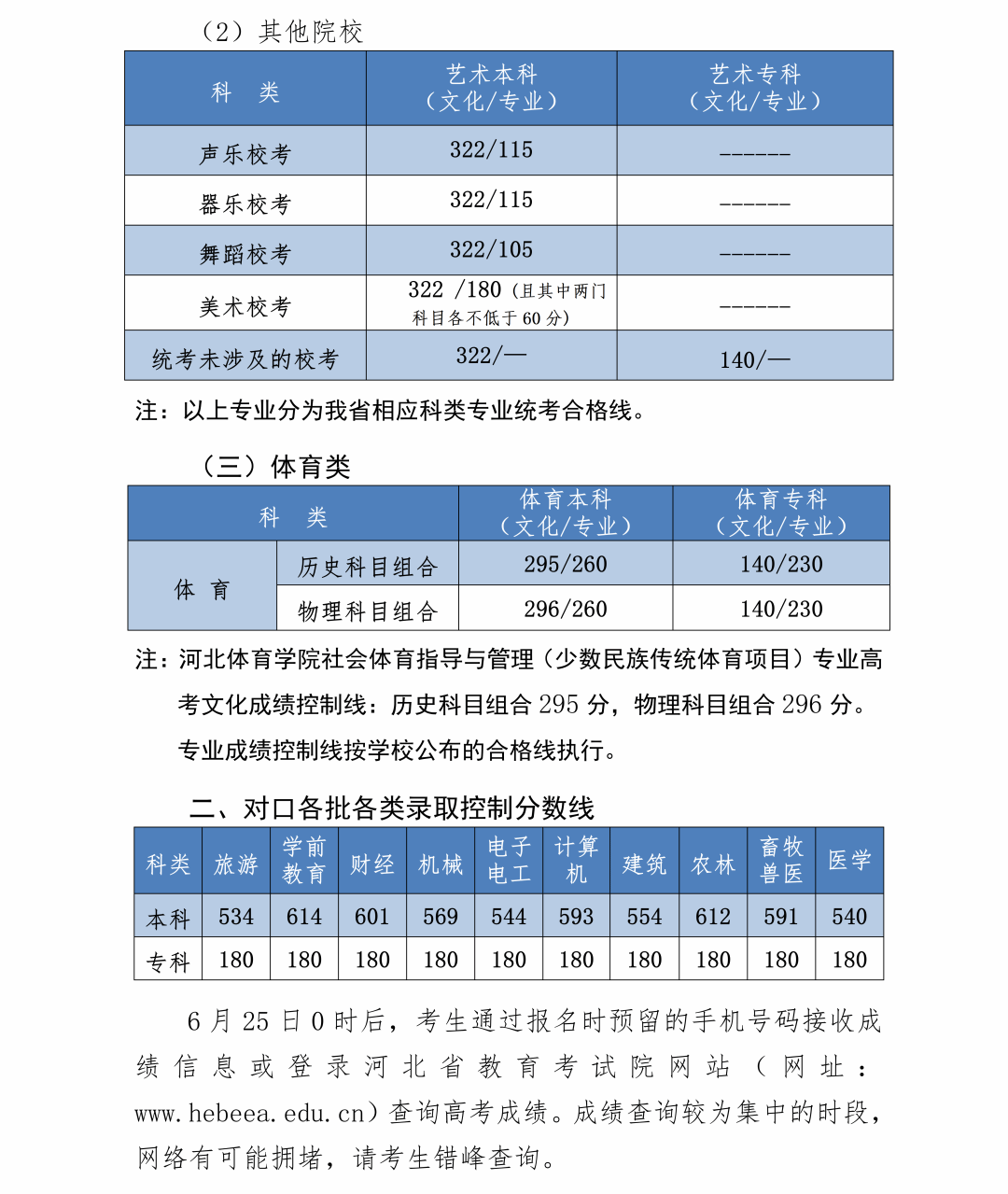 【发布】2023年河北省普通高校招生各批各类录取控制分数线