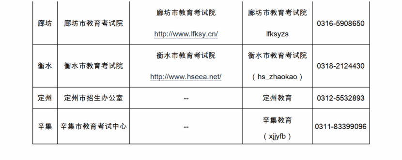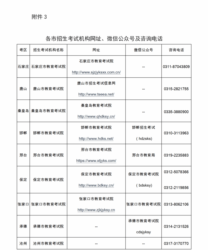 请考生及时关注河北省教育考试院官网、微信公众号(hbsksy)和考试所在地招生考试机构发布的相关信息。
