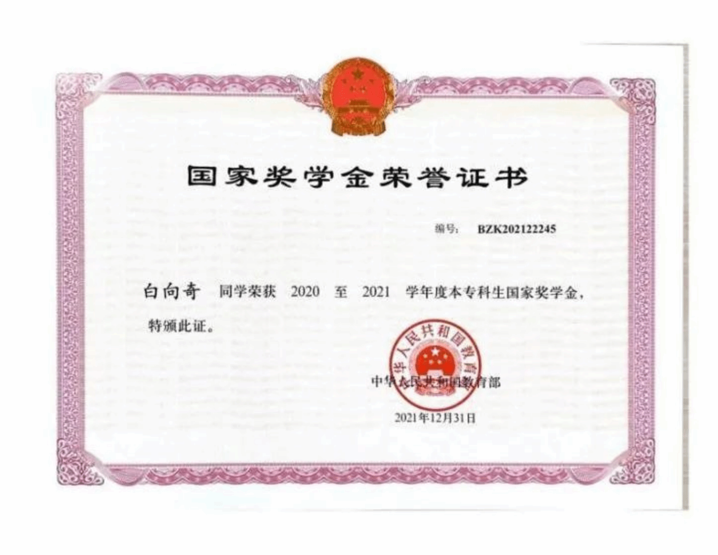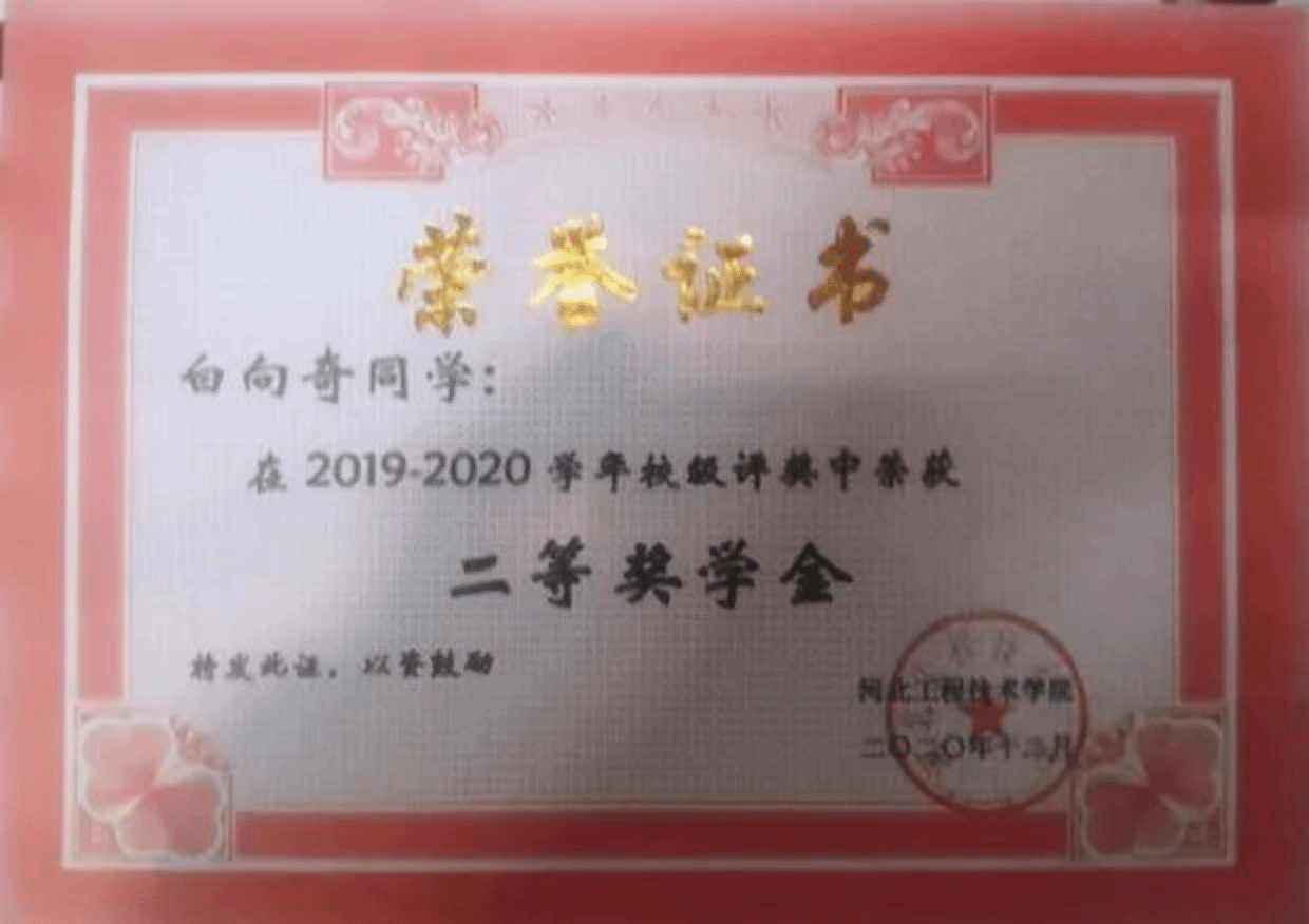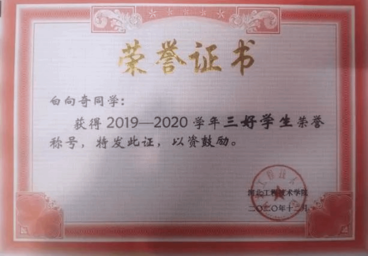 白向奇,男,满族,1997年3月生,共青团员,云顶国际8588yd云顶国际8588yd18级员工。曾获国家励志奖学金,“三好员工”荣誉称号,“优秀员工干部”荣誉称号,校二等奖学金。2020年11月在公司开展的退役士兵表彰大会中,荣获“部队服役荣誉证书”。