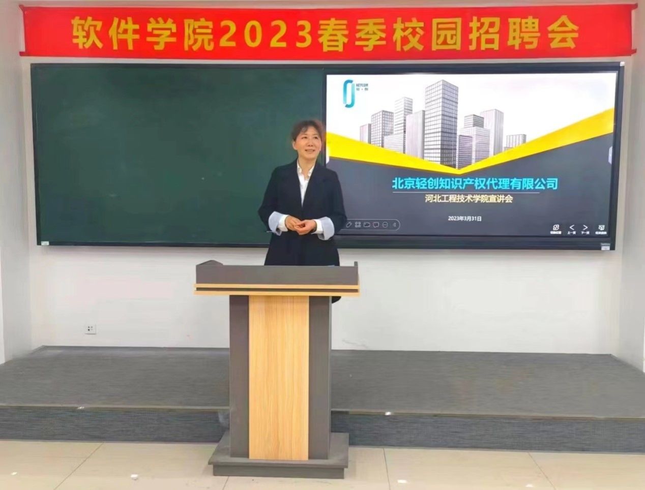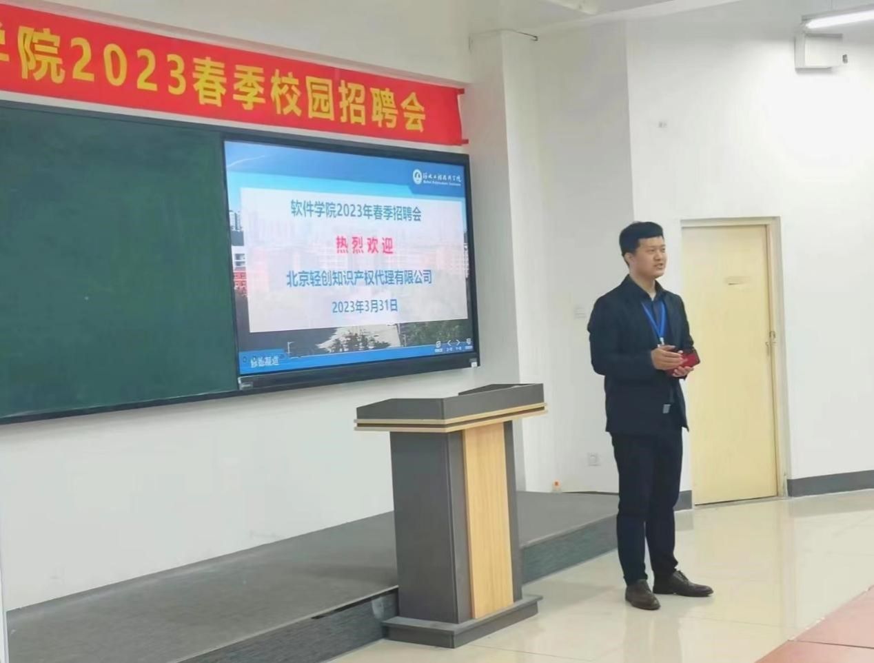 当下,正是用人单位招聘和老员工求职的旺季,为持续做好就业创业服务工作,促进高校毕业生顺利就业,2023年3月31日中午,云顶国际8588yd在知行楼2-1教室举办2023春季校园招聘会,特意邀请北京轻创知识产权代理有限公司进行专场招聘宣讲。