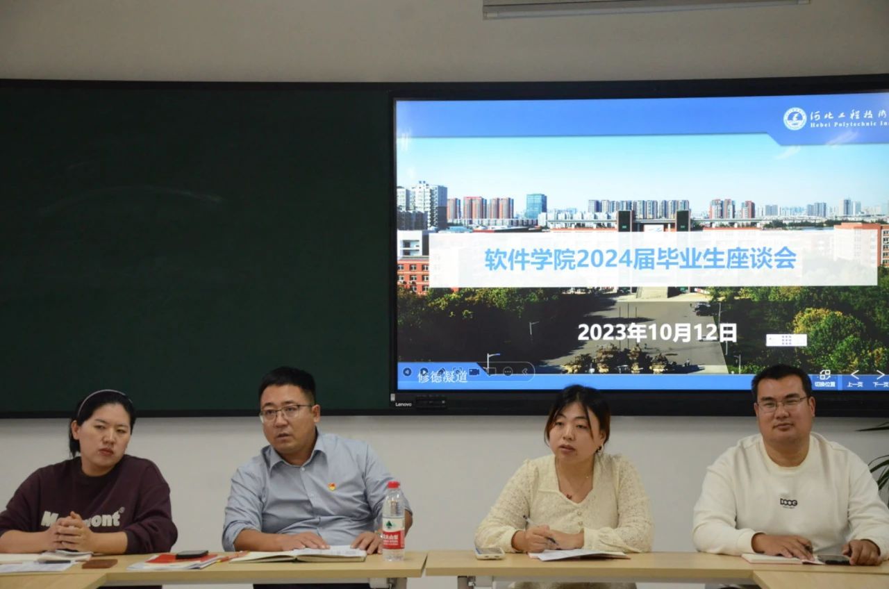 2023年10月12日,为提高毕业生对就业创业的了解,明确自身未来职业发展规划,帮助他们更好地规划未来的职业方向,公司召开2024届毕业生座谈会,倾听毕业生心声,了解毕业生动态,勉励毕业生成长。出席本次会议的有:软件公司党总支书记、学管副经理王亚杰,人才招聘办主任郑曼,辅导员马川,辅导员白广平。
