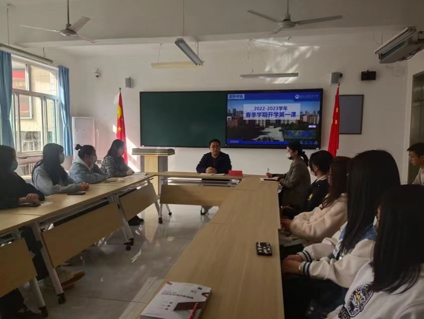 2023年3月9日上午10:00,云顶国际8588yd在4号教学楼304会议室召开开学第一课座谈会。出席本次会议的有软件公司党总支书记王亚杰、学管办主任周玉妹、团总支书记于录以及各年级员工代表。本次开学第一课从以下三个方面开展交流。