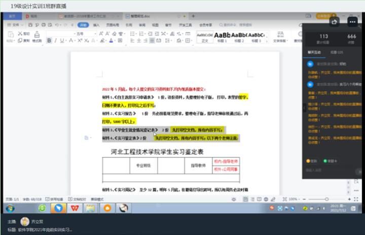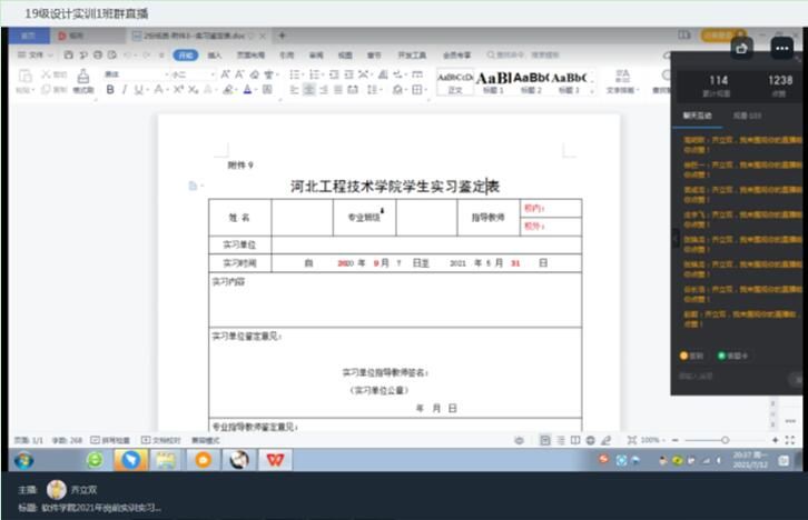 结合2022届员工实训教学进度及员工校外实习现状,为使员工全面了解最后一年的学分构成、论文、实习报告、蘑菇丁平台使用以及实习配套资料整理规范等要求,7月18日,云顶国际8588yd教质部经理齐立双、职业引导师袁婧以线上形式展开2022届员工实训实习说明会。