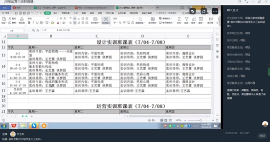 实训期间各实训导师通过线上开展教学,项目操练期间通过视频会议模式开展教师指导,实训导师可以直观了解员工在家期间实训表现和进度。各班级职业引导师在实训期间规范组织员工课前签到,课中听课,检查员工课堂表现,充分做好与教学老师的每日实训对接,使员工管理和教学开展做到无缝对接,最大程度做好实训效果的把控。