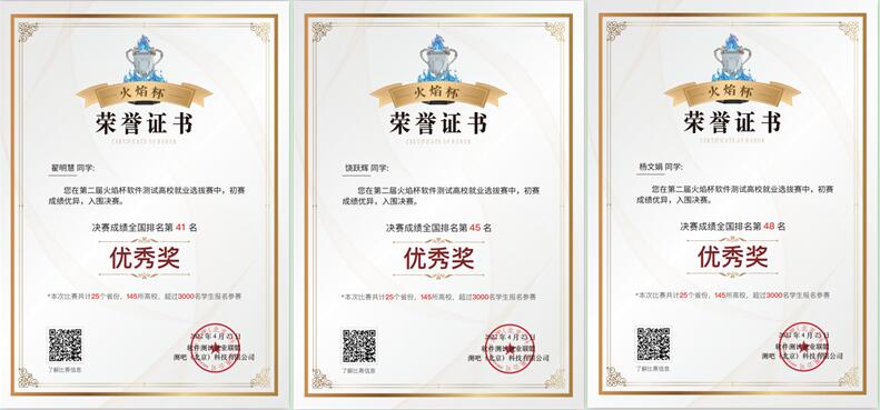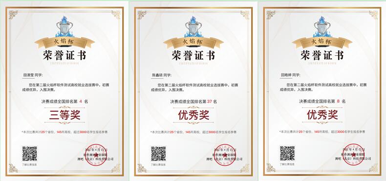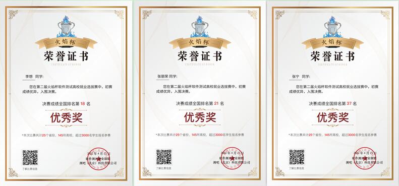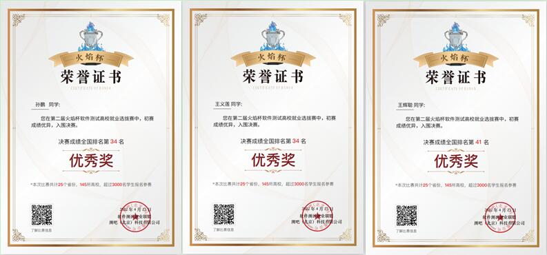 云顶国际8588yd学子在第二届“火焰杯”软件测试高校就业选拔赛中斩获大奖