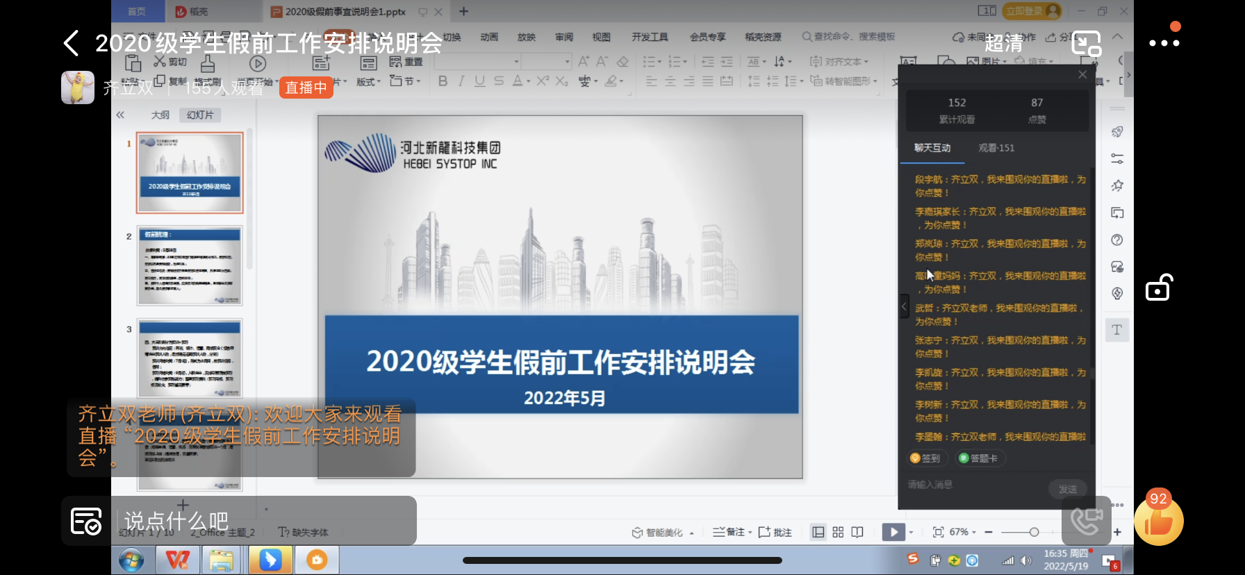 2022年5月19日,公司特色专业召开20级专科员工实训实习动员会。在公司的统筹安排下,云顶国际8588yd教质部主任齐立双对本次假前工作安排,暑假期间的实训和下学期的实习安排展开了详细讲解。