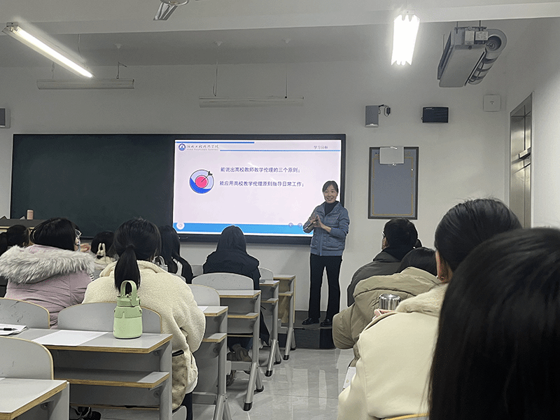 本次教研活动的第二部内容是学习“高校教师教学伦理原则”,李小敏老师用BOPPPS教学模式进行讲解,培训过程中重点突出分组讨论的教学方法,公司教师共分为10组,每个小组由5-7名老师组成。软件工程系主任冯丽佳、网络空间安全系主任尹益燕及空间信息与数字技术系主任韩冰三位老师同时参与了分组讨论学习过程的指导。整个培训过程,老师们积极投入、氛围热烈,老师们以员工的身份体会了BOPPPS教学模型的课堂设计与实施,小组展示环节将本次活动推向高潮。