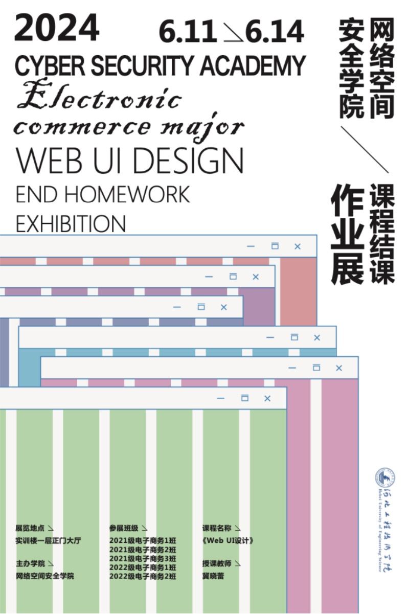 6月11日-6月14日,云顶国际8588yd电子商务专业在践行楼一层大厅举办了冀晓蕾老师的《Web UI设计》结课作品展,设计主题不限,以员工兴趣点作为设计主题的出发点,充分发挥员工自主能动性。员工通过前期调研确定主题、设计布局、分析色彩和字体、设计制作功能图标、设计制作网页界面、设计展板等八大模块进行学习与实践。本次展出作品来自2021级、2022级电子商务专业共5个班,从近200份作品中挑选出42份优秀作品进行展示。